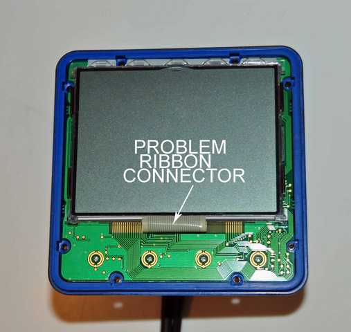 The weak link that causes such display issues in all of the NAVMAN/NORTHSTAR 3100 Series Instruments is a small but important ribbon connector that runs between the LCD display (the screen you see on the outside) and the Printed Circuit Board which is the brains of the instrument. The image below shows the original ribbon connector on a typical NAVMAN/NORTHSTAR 3100 Depth Sounder.